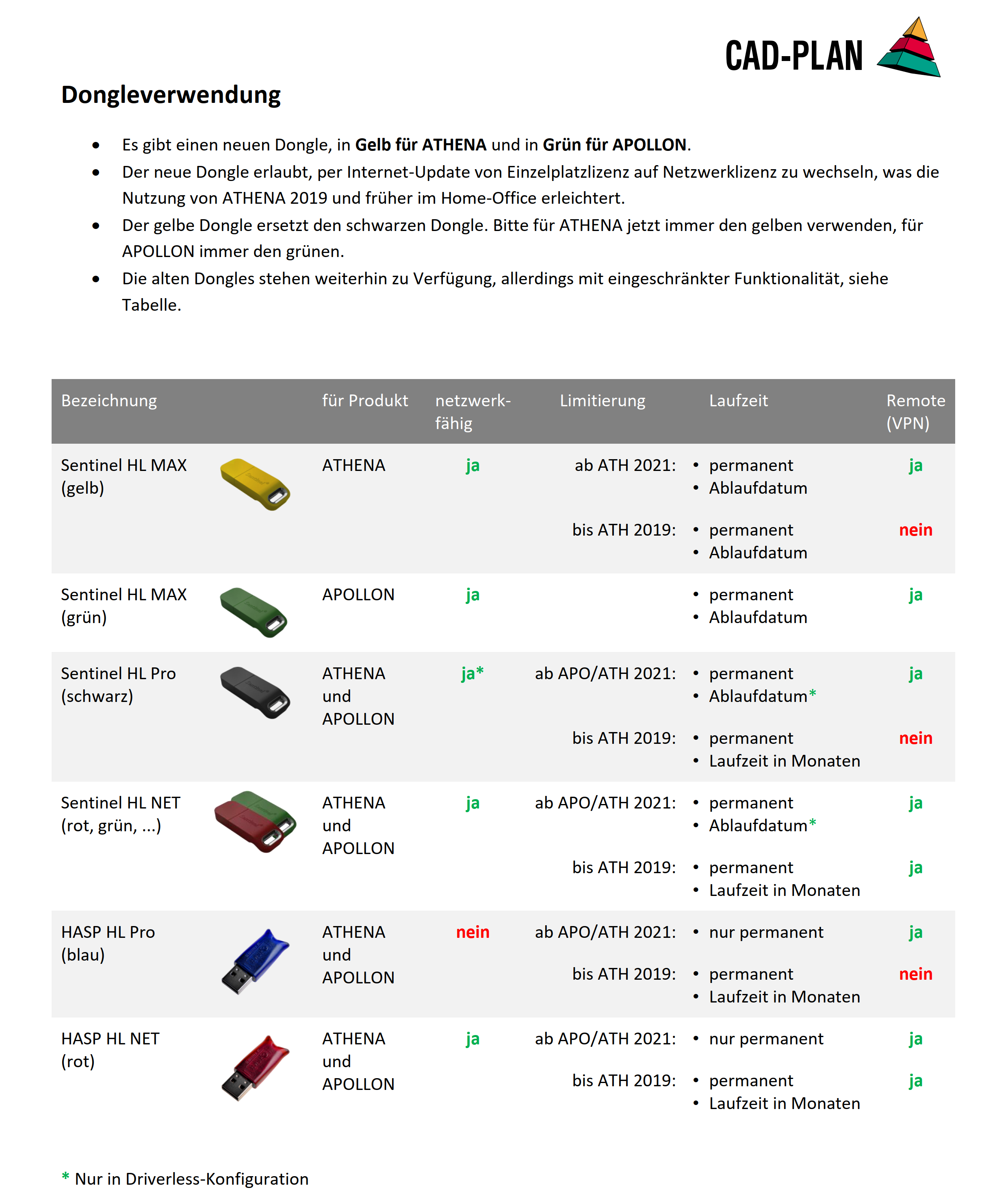 Für ATHENA (und APOLLON) unterscheiden wir verschiedene Dongles (Hardwareschutz). Die Geräte in der Übersicht: |